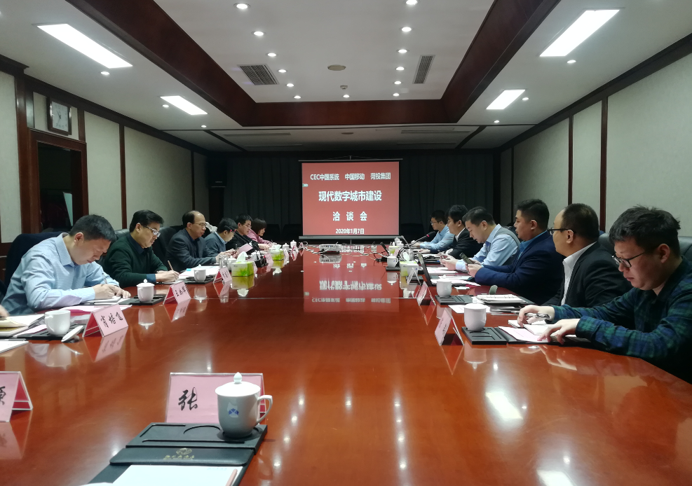 為貫徹落實《菏澤市智慧城市頂層設計(總體規(guī)劃)》、《菏澤市智慧城市三年行動計劃(2019-2021)》等文件要求,加快推進智慧城市建設進度,2020年1月7日上午,中國電子系統(tǒng)技術(shù)有限公司、中國移動菏澤分公司、菏投集團在牡丹大酒店召開現(xiàn)代數(shù)字城市建設洽談會。菏澤市工業(yè)和信息化局副局長李建華、信息辦主任葛慶旺到會指導。菏投集團黨委副書記、總經(jīng)理丁萬國,黨委委員、副總經(jīng)理肖培飛、云海科技(山東)有限公司董事長王如輝等有關人員出席了會議。