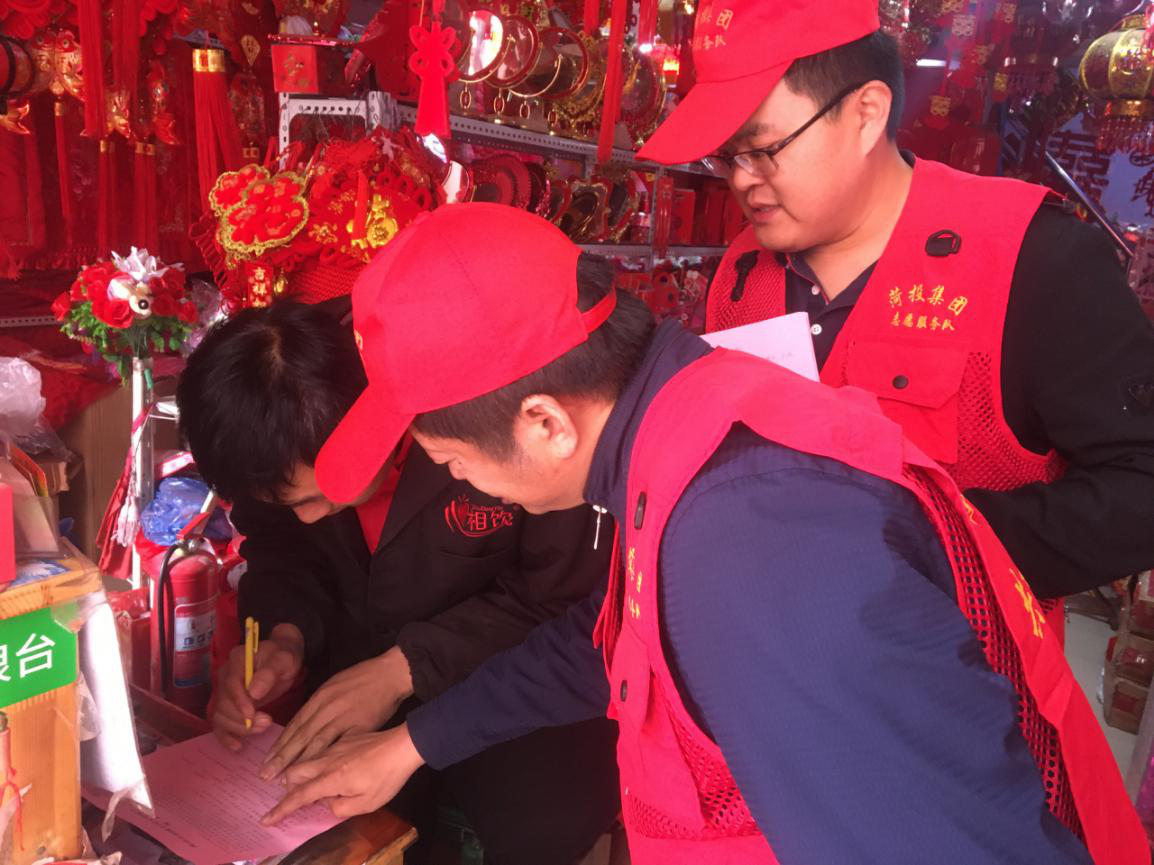 菏投集團(tuán)志愿者們?nèi)霊舭l(fā)放調(diào)查問卷和“雙城同創(chuàng)”宣傳資料